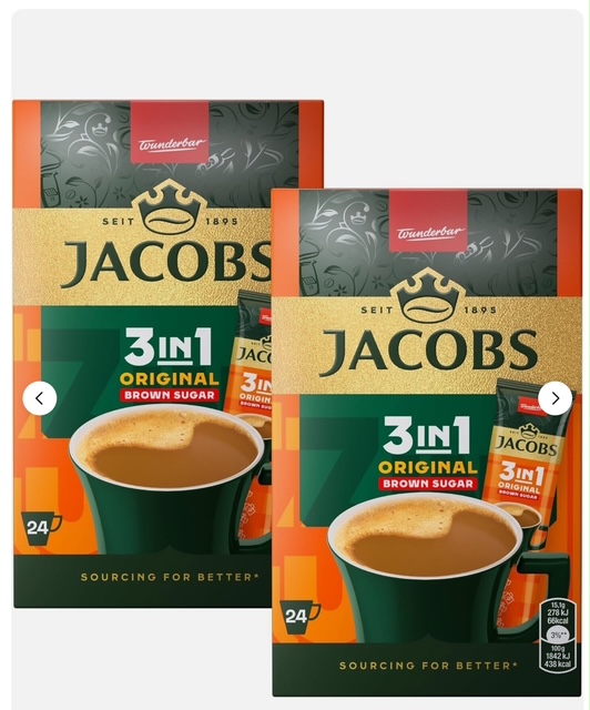Jacobs 3 in 1 Brown Sugar Instant Coffee Sachets offer a rich and flavourful coffee experience with a unique twist of brown sugar. This convenient blend combines high-quality coffee, creamer, and the warm sweetness of brown sugar, delivering a smooth and full-bodied cup with a subtle caramel-like sweetness. Perfectly balanced for a comforting and satisfying taste, each sachet is easy to prepare—just add hot water, stir, and enjoy. Ideal for coffee lovers who appreciate a touch of natural sweetness, Jacobs 3 in 1 Brown Sugar provides a delightful, ready- to-go coffee experience anytime, anywhere.